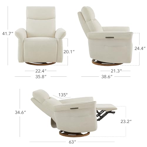 Luxury Triple-Motor Power Swivel Nursery Glider: Elevate your nursery experience with this advanced power recliner chair, engineered for unparalleled comfort. A triple-motor power control system enables 270° swivel, smooth gliding and effortless 90-135° recline at the push of a button. Adjustable power headrest and lumbar support eliminate the need for extra pillows, cradling your body in every position.