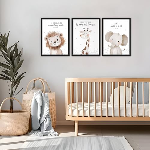 【Gift-Ready Nursery Wall Decor】With its timeless safari theme, inspirational scriptures, and quality animal nursery decor, this set makes a meaningful gift for baby showers, baptisms, birthdays, or holidays. Perfect for new parents creating a safari wall decor setup or families wanting nursery art wall decor that inspires and delights.